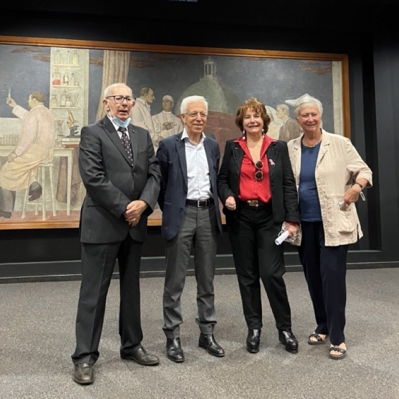 Après l'intervention du professeur Jean Pierre Delord, le professeur Roland Schmith et de Madame Yanne Rebeschini, cette photo souvenir du dévoilement de la fresque en présence de Madame Gayot Saint Saens, la fille de Marc Saint Saens, a été un très fort moment d'émotion concrétisé par la remise d'un chèque de 2000 EUROS remis au directeur général de l'IUCT Oncopole